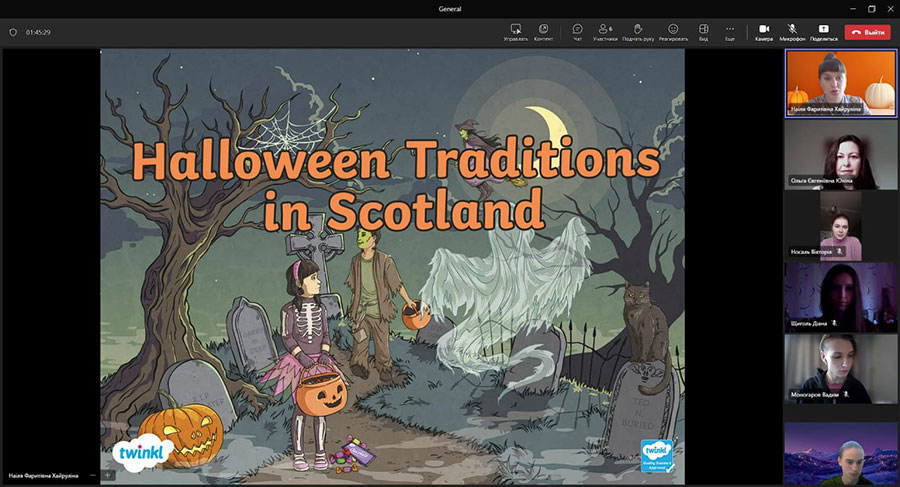 У рамках вивчення культури англомовних країн 31 жовтня викладачі кафедри романо-германської філології (доц. Хайруліна Н.Ф. та доц. Юніна О.Є.) зорганізували та провели тематичний захід присвячений святу Гелловін англійською мовою.