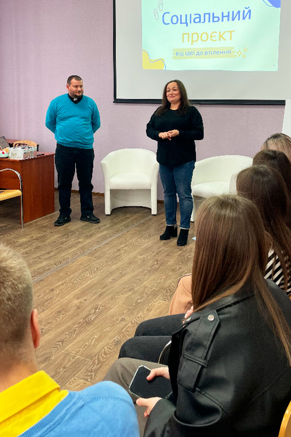 Тренерами-модераторами заходу виступили директор та проєктний менеджер БО «Карітас Лубни» Василь та Надія Улішаки. Вони поділилися практичним досвідом розробки та реалізації соціальних ініціатив, а також розглянули ключові етапи проєктного менеджменту в соціальній сфері.