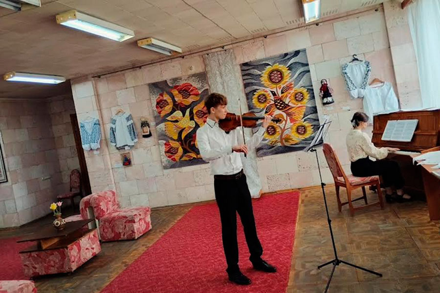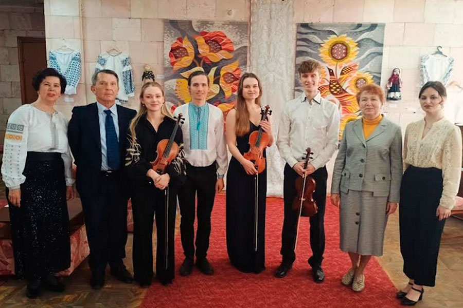 Студенти кафедри музичного мистецтва та хореографії навчально-науковго інституту мистецтв виконували камерну музику під керівництвом Народного артиста України Юрія Кириченка (скрипка) та викладачки кафедри Олени Кириченко (фортепіано).