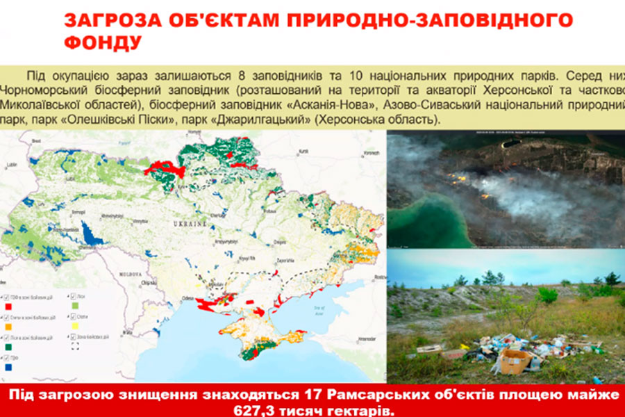 Пані Тетяна детально проаналізувала масштабність завданих збитків довкіллю: забруднення повітря, шкоду, завдану водним ресурсам, біорізноманіттю, об'єктам природно-заповідного фонду, наслідки терористичного акту рф на Каховській греблі. «Важливо, щоб країна-агресорка була притягнута до відповідальності», - підсумувала Тетяна Валентинівна, закликавши долучитись усім бажаючим до експертів та науковців екологічної ліги у зборі, дослідженні інформації про шкоду від російського вторгнення для довкілля.