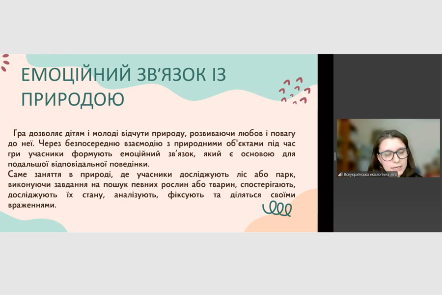 Олександра Федонюк, фахівець-еколог Центру екологічної освіти та інформації, ознайомила учасників заходу із можливостями використання екологічних ігор як ефективного методу залучення дітей та молоді до природоохоронної діяльності.