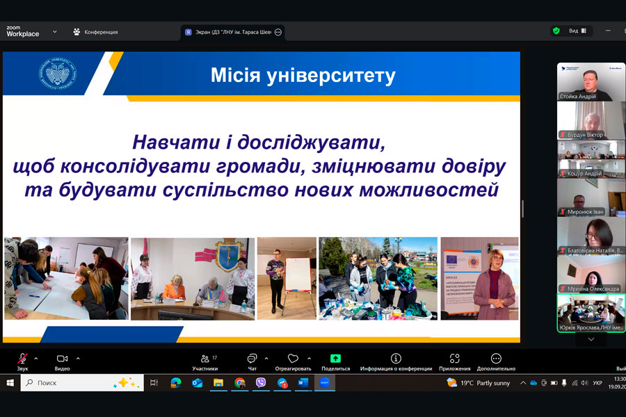 19 вересня 2025 року команда ДЗ «Луганський національний університет імені Тараса Шевченка» в складі завідувача кафедри професійної освіти, ресторанного і туристичного бізнесу Віктора БУРДУНА, проректора з науково-педагогічної роботи Світлани ВОВК, вченого секретаря вченої ради університету Ольги ДРОБИШЕВОЇ, заступника директора з навчальної роботи навчально-наукового інституту соціальних і гуманітарних наук Юлії НУЖНОЇ, проректора з науково-педагогічної роботи Ярослави ЮРКІВ взяла участь у міжнародній онлайн-конференції Програми професійного розвитку академічних менеджерів – завершальному заході першого циклу навчання для управлінських команд українських університетів.