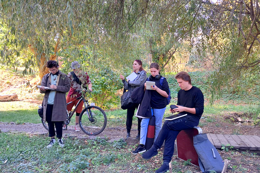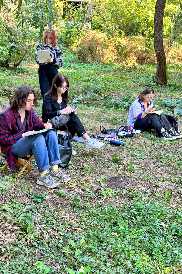 Спочатку представники галереї провели екскурсію ботанічним садом та розповіли про його довгу історію та унікальні рослини. Потім художники шукали цікаві локації, де можна намалювати красиві пейзажі. Роботи мали різні характери: від простих замальовок до повноцінних картини. Серед учасників пленеру були і викладачі кафедри образотворчого та декоративно-прикладного мистецтва Наталія Дігтяр і Олексій Соболевський та старший викладач кафедри дизайну Оксана Гетьман.