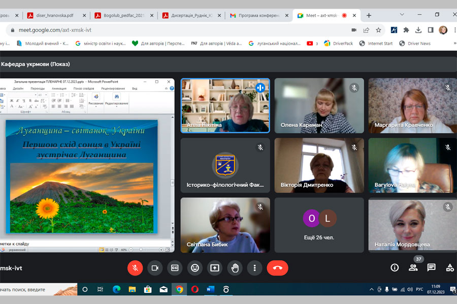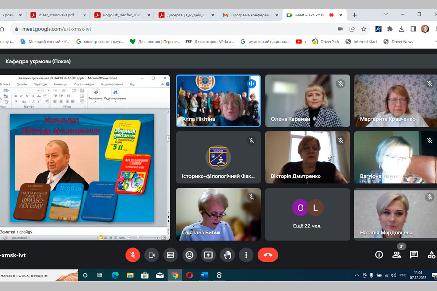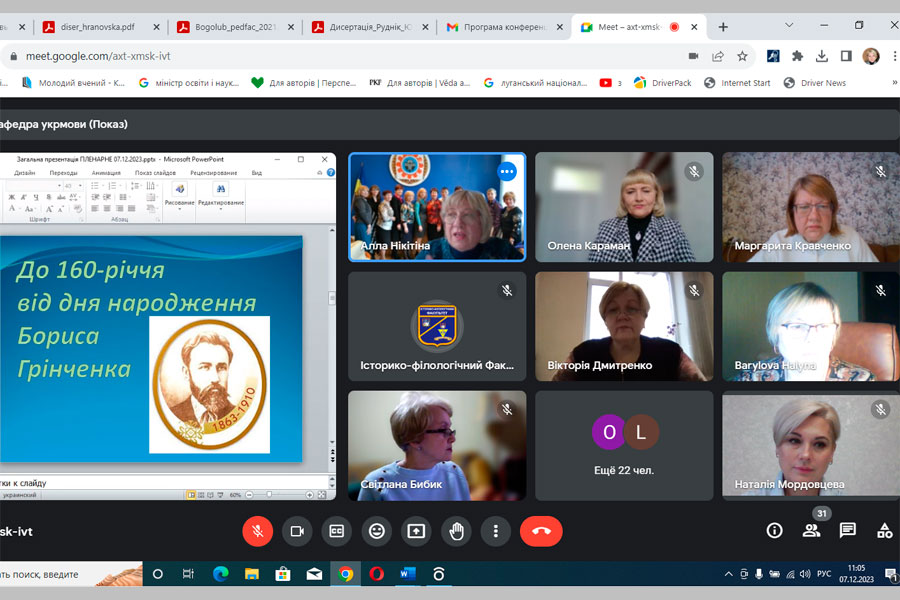 7 грудня 2023 року в ЛНУ імені Тараса Шевченка викладачі кафедри початкової освіти – доц. Наталія Мордовцева, проф. Марія Починкова, доц. Дмитро Ужченко, доц. Олена Слободян за запрошенням кафедри української мови взяли участь у ХХІІ Всеукраїнській науково-практичній конференції імені Віктора Ужченка «ОБРАЗНЕ СЛОВО ЛУГАНЩИНИ», присвячена 160-річчю від дня народження Бориса Грінченка.