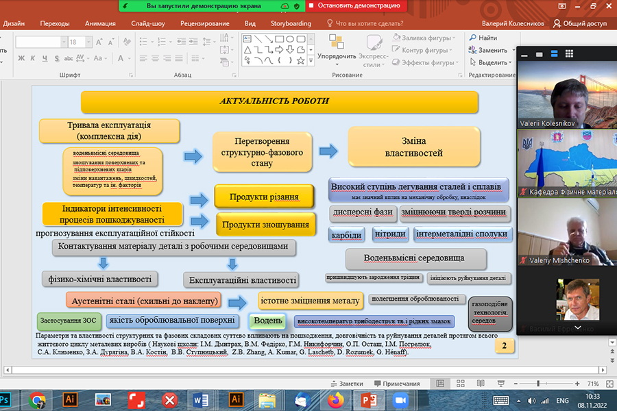 З доповіддю «Комплексні дослідження впливу структурних складових сталей та сплавів виробів енергообладнання на їх оброблюваність та зношування» на конференції виступив к.т.н., доцент кафедри Колесніков Валерій Олександрович.