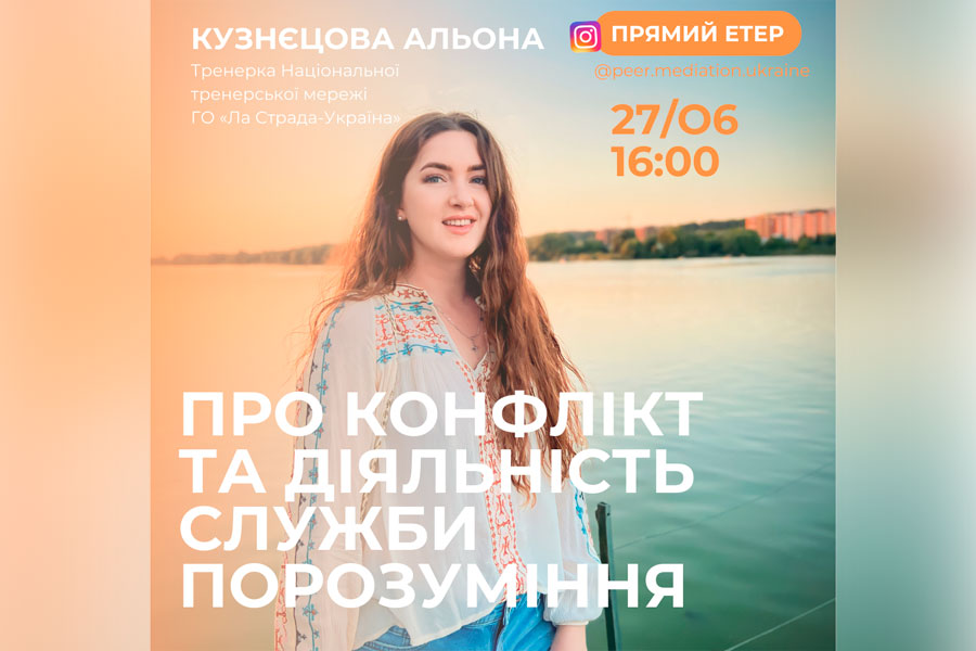 27 червня студентку/медіаторку, спеціальності 231 Кузнєцову Альону Ігорівну було запрошено спікером на прямий ефір на тему : Конфлікт та діяльність служби порозуміння»
