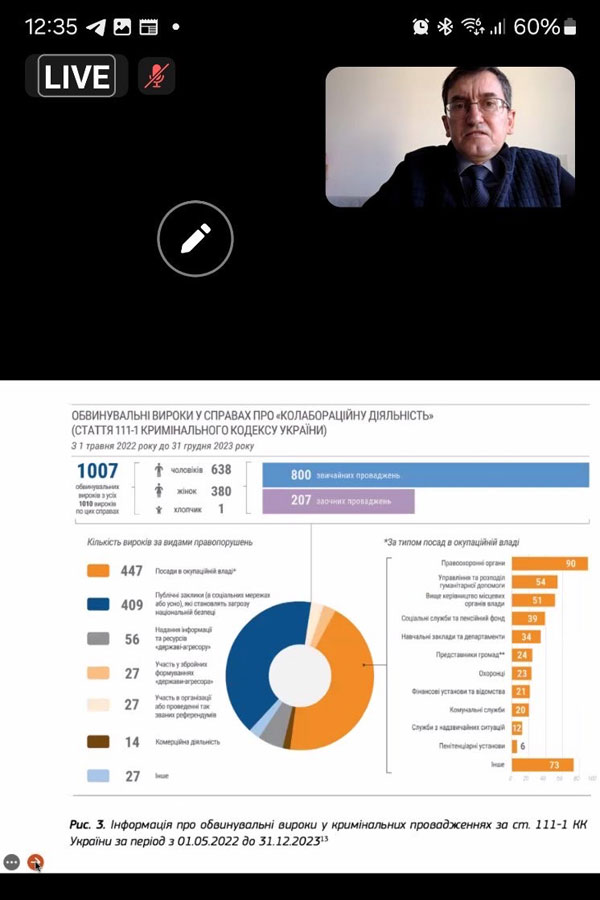 Під час заходу були презентовані ключові висновки соціологічних досліджень, що стосуються ставлення суспільства до колабораціонізму та відповідальності за нього; проаналізовано законопроєкти щодо відповідальності за колабораціонізм; відбулося обговорення актуальних змін у правовому регулюванні.