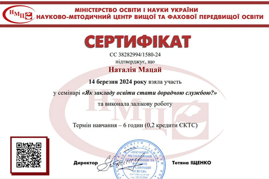 Участь у роботі онлайн-семінару «Як закладу освіти стати дорадчою службою?»