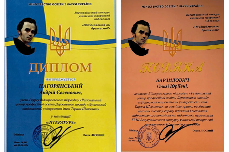 Андрій НАГОРЯНСЬКИЙ, здобувач освіти I курсу, посів перше місце у фіналі та отримав Диплом у номінації «Література» від Міністерства освіти і науки України, продемонструвавши високий рівень таланту та креативності.