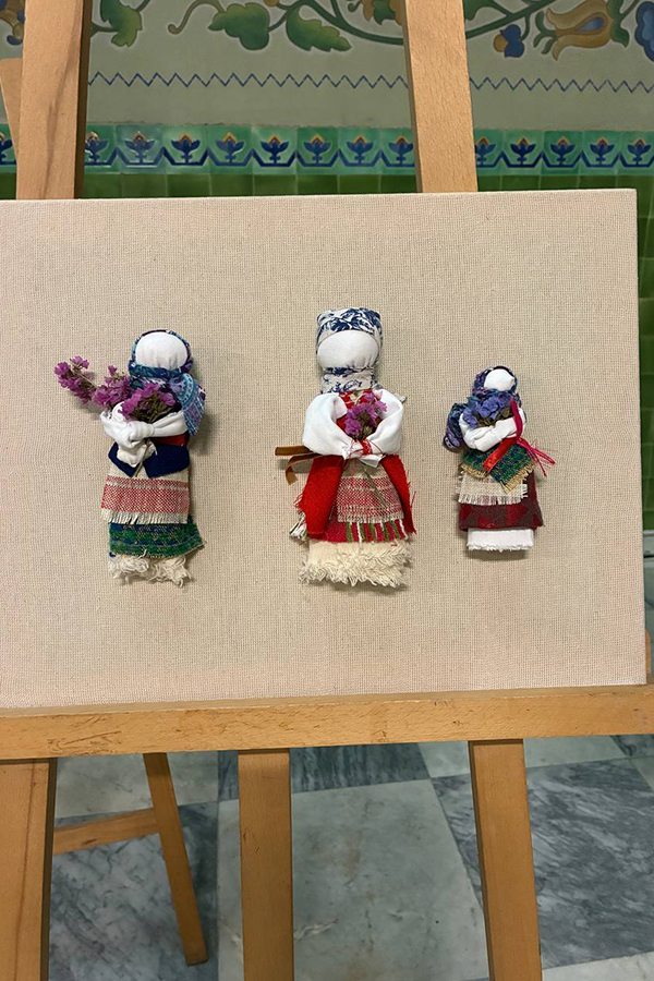 Студенти, випускники та викладачі ЛНУ представили на одноденній виставці свої авторські роботи — вузлові ляльки та твори у техніці полтавського розпису, створені у традиціях народного декоративно-прикладного мистецтва.