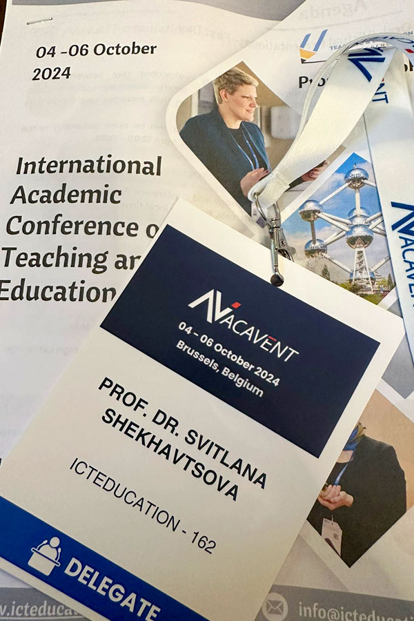 Міжнародну наукову конференцію з викладання та освіти, що проходила з 4 по 6 жовтня 2024 року в Брюсселі, Бельгія, відвідала докторка педагогічних наук, професорка Світлана Шехавцова. Престижна конференція пропонувала унікальну мобільну платформу для демонстрації новаторських досліджень та ідей. Представниця університету взяла участь у роботі глобальної аудиторії освітян і науковців, сприяючи жвавим дискусіям і народжуючи нові педагогічні ідеї. Учасниця презентувала доповідь на тему: «Розвиток самоосвітньої компетенції майбутніх учителів іноземних мов в умовах глобалізації».