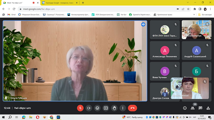 На зустрічі були присутні: декан, заступники декана, співробітники деканату, завідувачі кафедр, гаранти ОП, викладачі, здобувачі освіти всіх ОП спеціальностей факультету. З привітального слова зустріч розпочала декан факультету природничих наук Наталія МАЦАЙ, яка ознайомила першокурсників набору 2023 року з історією Луганського національного університету імені Тараса Шевченка та факультету природничих наук. Заступник декана із навчальної роботи Ольга ГУБСЬКА розповіла про особливості освітнього процесу в університеті, познайомила зі структурою змішаного формату навчання, освітньою платформою «Освітній портал ЛНУ». Заступник декана із наукової, міжнародної та проєктної діяльності Ірина КИРПИЧОВА розповіла про напрямки наукової роботи на факультеті. Провідний фахівець деканату Віра ЯВТУШЕНКО надала всю необхідну інформацію щодо соціальної підтримку здобувачів освіти, секретарка деканату Юлія ПЕТРЕНКО розповіла про процедуру отримання студентських квитків.