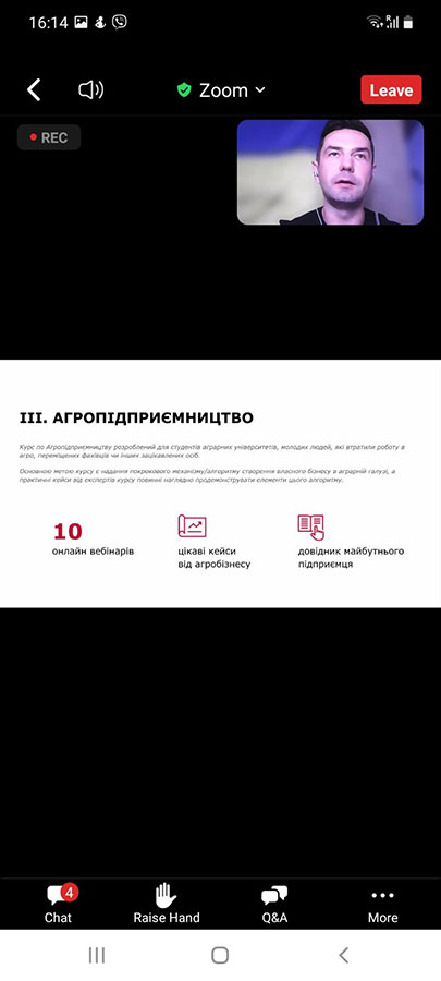 Підтримка занять відбувається онлайн. Цікавими можливостями є онлайн екскурсії на найбільш потужні агровиробництва країни.