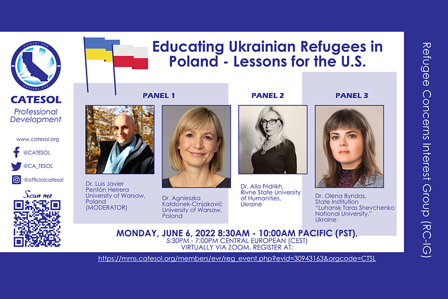 6 червня відбувся Міжнародний вебінар від CATESOL, організований Головою спілки Джуді О’Лоуглін (Каліфорнія) та доцентом кафедри сучасних мов Варшавського університету, Польща, Льюісом Явіер Пентон Херрера.