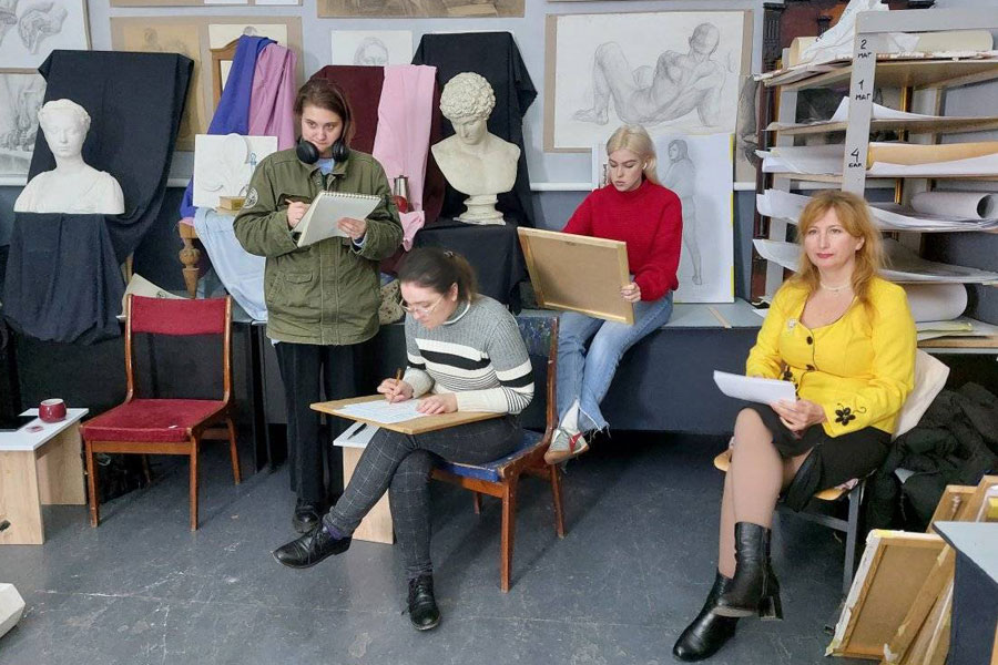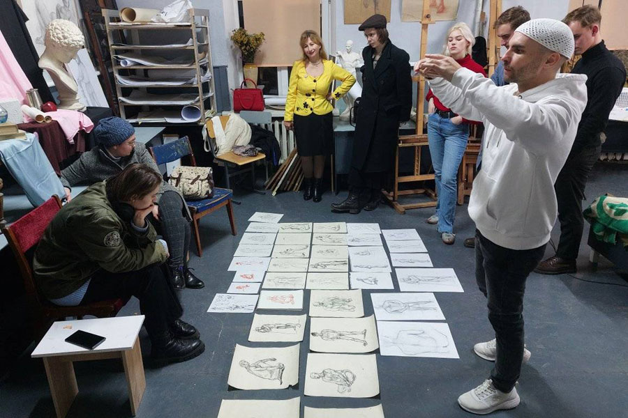 For three hours, third-year students and first- and second-year master's students worked on a series of sketches of the naked male figure from different angles.