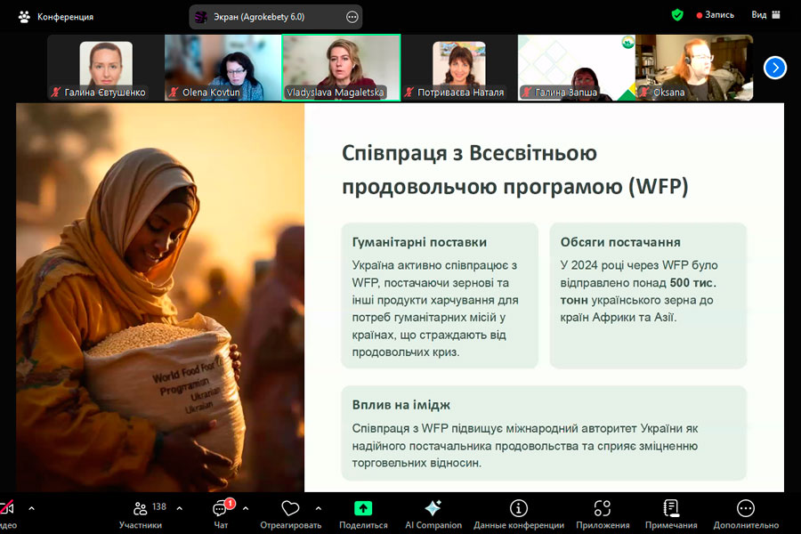 Пані Магалецька детально розповіла про експорт основних сільськогосподарських культур, тваринної продукції та нішевих товарів.