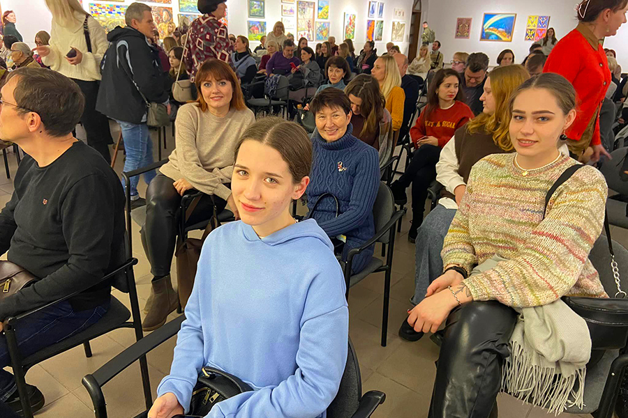 Послухати метра прийшли доцент кафедри теорії та практики перекладу Світлана Перова, доцент кафедри іноземних мов за професійним спрямуванням Світлана Шпетна, викладач кафедри теорії та практики перекладу Ольга Корінська, а також здобувачі третього курсу першого (бакалаврського) рівня за спеціальністю «035 Філологія» спеціалізацій 035.041 – Германські мови та літератури (переклад включно), перша – англійська» Світлана Єсакова та Михайло Кузнєцов.
