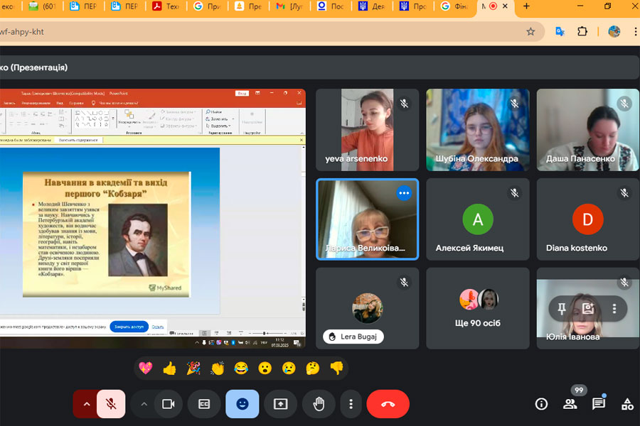 8 березня 2025 року здобувачі освіти, викладачі співробітники коледжу спільно з Старобільським фаховим коледжем ДЗ «ЛНУ імені Тараса Шевченка» відвідали онлайн захід присвячений історії життя та творчості Т. Шевченка, що організувала та проводила викладачка української мови та літератури Старобільського коледжу, Л. Великоіваненко.