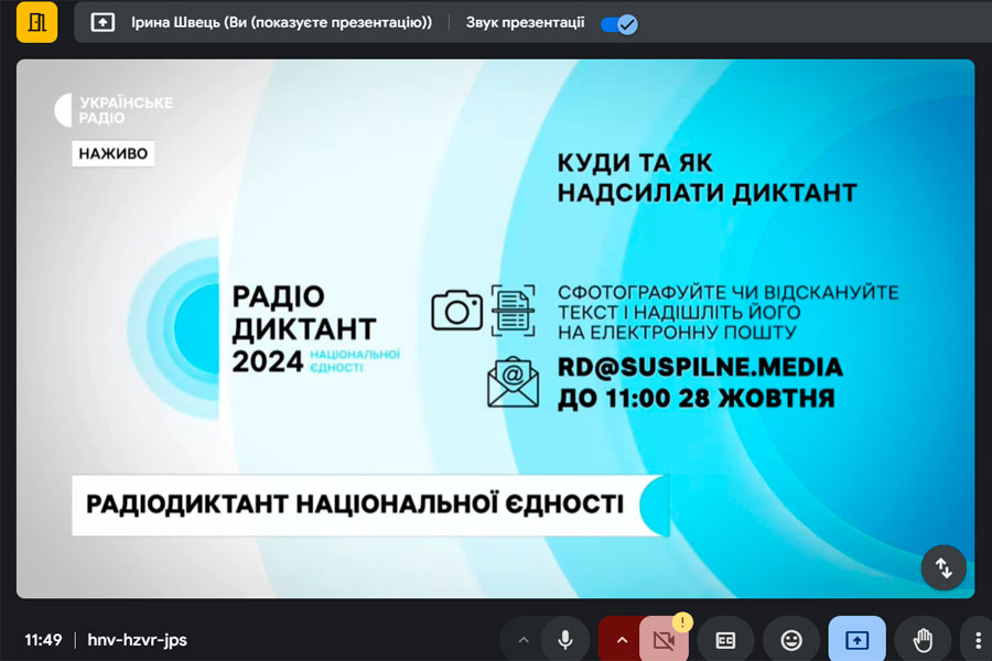 25 жовтня структурні підрозділи Луганського національного університету імені Тараса Шевченка, що знаходяться в місті Миргород: НН ІМІТ, НН ІБМ та НН ІПАН долучились до написання всеукраїнського радіодиктанту національної єдності-2024 з нагоди Дня української писемності та мови.