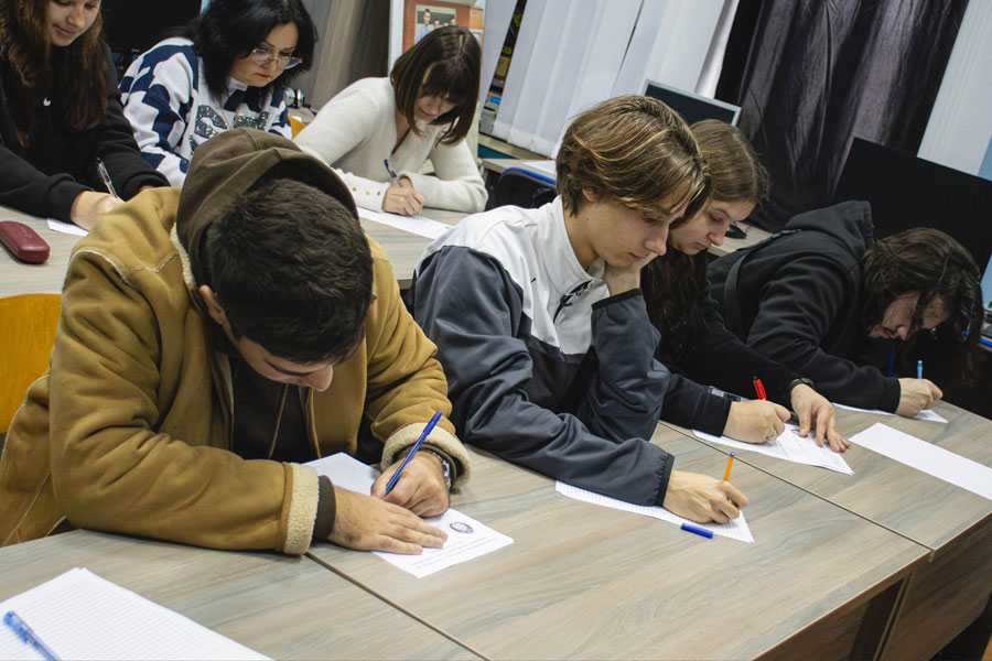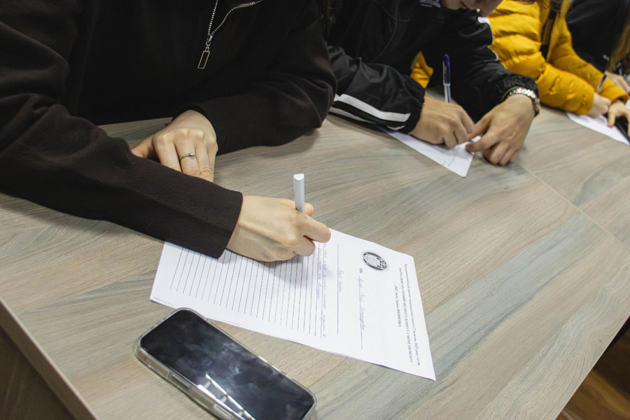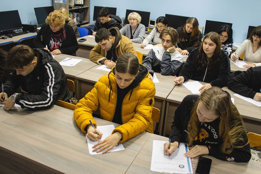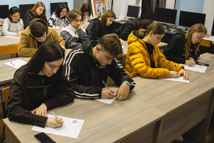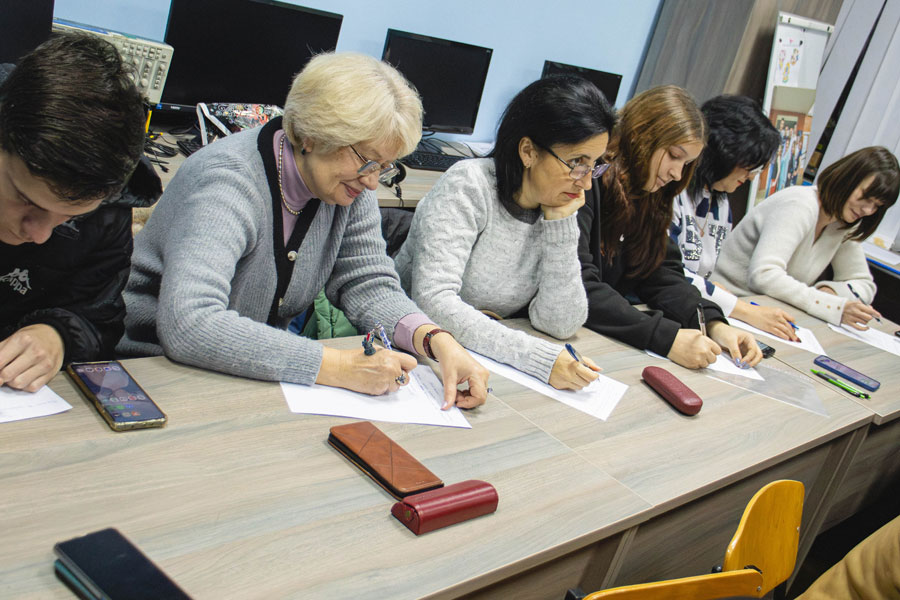 В аудиторії університету панувала зосереджена, але водночас піднесена атмосфера. Перед початком учасники прослухали звернення організаторів акції, після чого уважно записували текст, демонструючи свою мовну культуру, любов до українського слова та патріотизм.