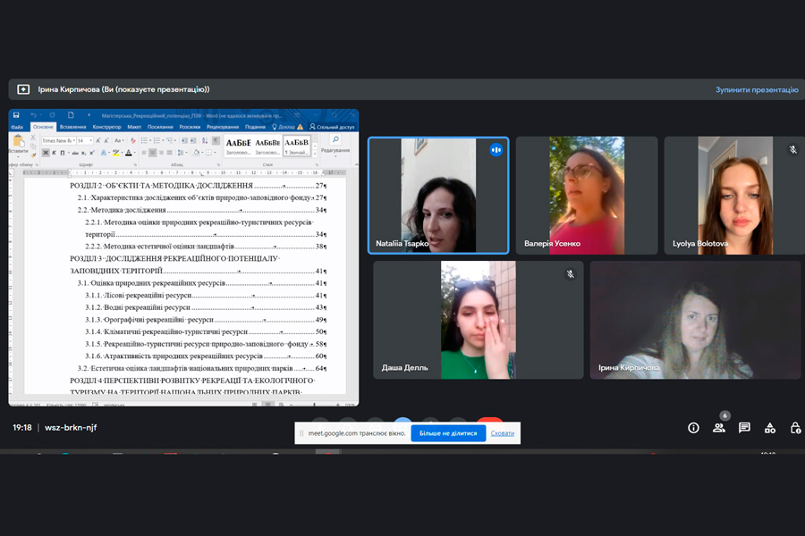 У зустрічі взяли участь керівники практики Ірина Кирпичова, доцент кафедри садово-паркового господарства та екології, канд. біол. наук, доцент та Наталія Цапко, завідувач лабораторії еколого-токсикологічних досліджень антропогенного впливу на компоненти довкілля та нормування екологічно безпечного природокористування, канд. техн. наук, доцент.