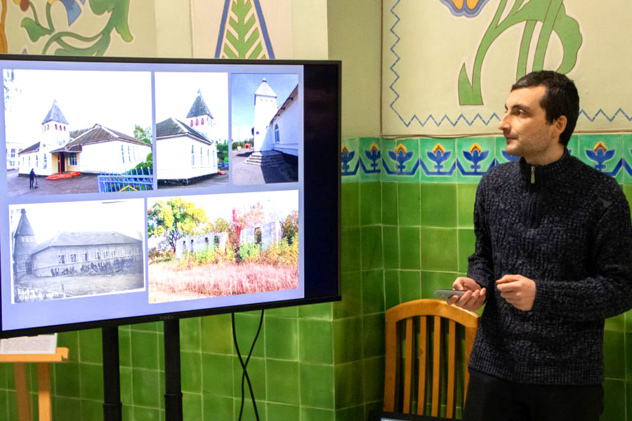 Із науковим доповідями про комплекс спадщини Опанаса Сластьона виступили: мистецтвознавець Віталій Ханко, завідувачка сектору відділу фондів нашого музею Оксана Сулима та Артур Ароян, кандидат архітектури, доцент кафедри образотворчого та декоративно-прикладного мистецтва Луганського національного університету імені Тараса Шевченка, краєзнавець, культурний менеджер. Кураторка виставки – Ганна Барська.