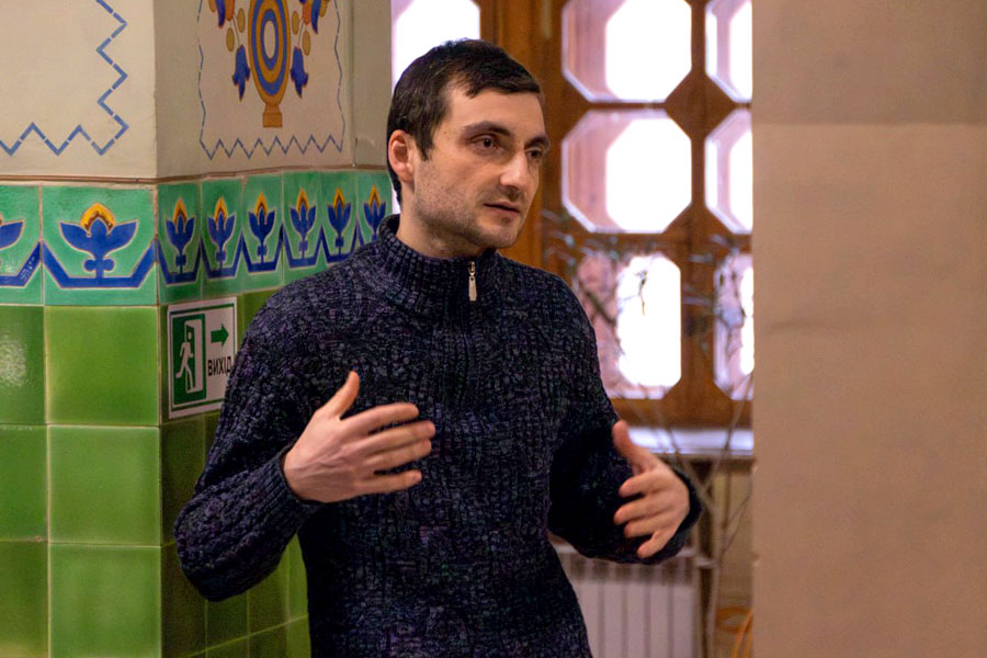 На виставці виступив Артур Ароян, доцент кафедри образотворчого та декоративно-прикладного мистецтва.