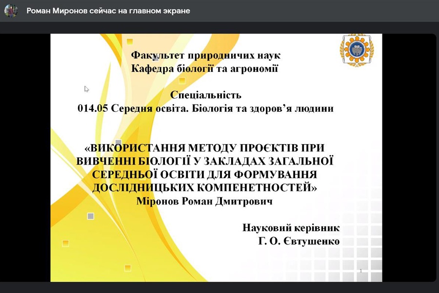 Магістранти спеціальностей 014 Середня освіта за спеціалізаціями "Біологія та здоров'я людини" та "Географія" впевнено представили результати своїх досліджень. Дуже приємно що серед випускників багато тих, хто вже багато років працюють у закладах загальної середньої освіти та відділах освіти. Усі представлені роботи викликали жваву зацікавленість екзаменаційної комісії та присутніх.