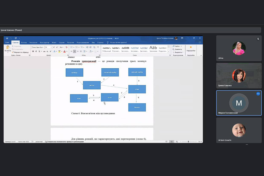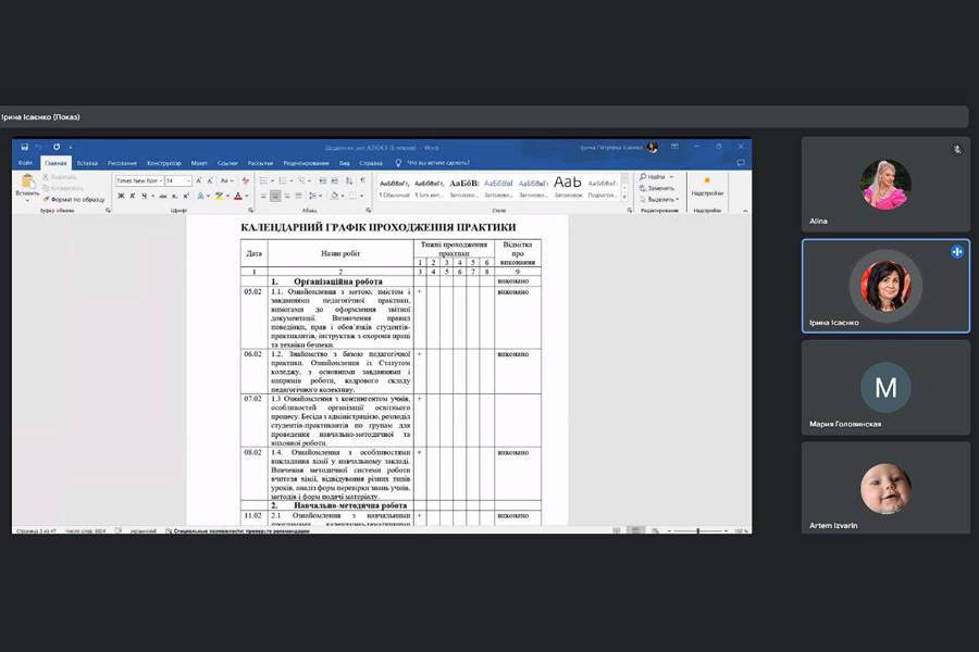 20 березня 2024 року на кафедрі хімії, географії та наук про Землю навчально-наукового інституту природничих і аграрних наук відбувся захист звітів з виробничої педагогічної практики здобувачів 4-го курсу першого (бакалаврського) рівня вищої освіти освітньо-професійної програми «Хімія». Практика проходила з 05 лютого по 16 березня на базі ВСП «Лисичанський педагогічний фаховий коледж ДЗ «Луганський національний університет імені Тараса Шевченка».