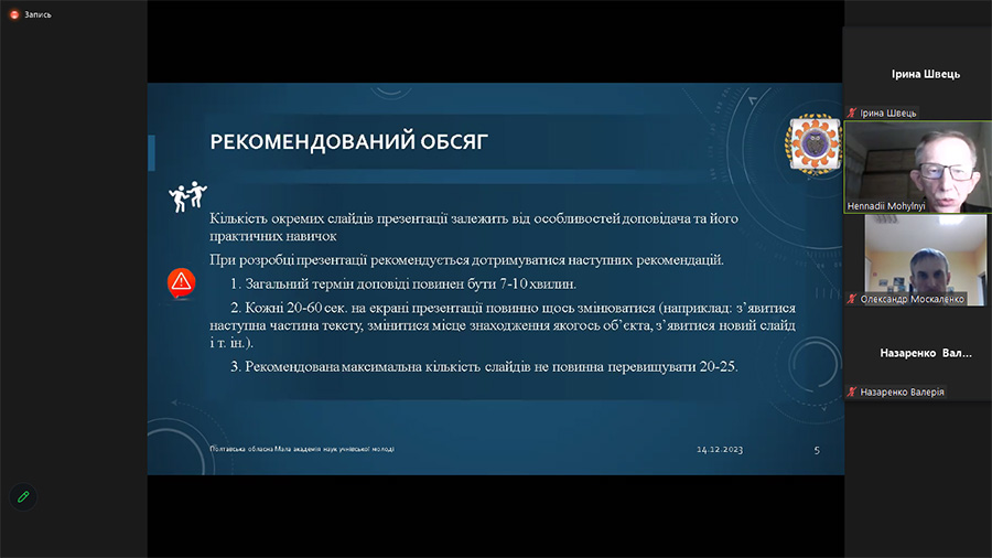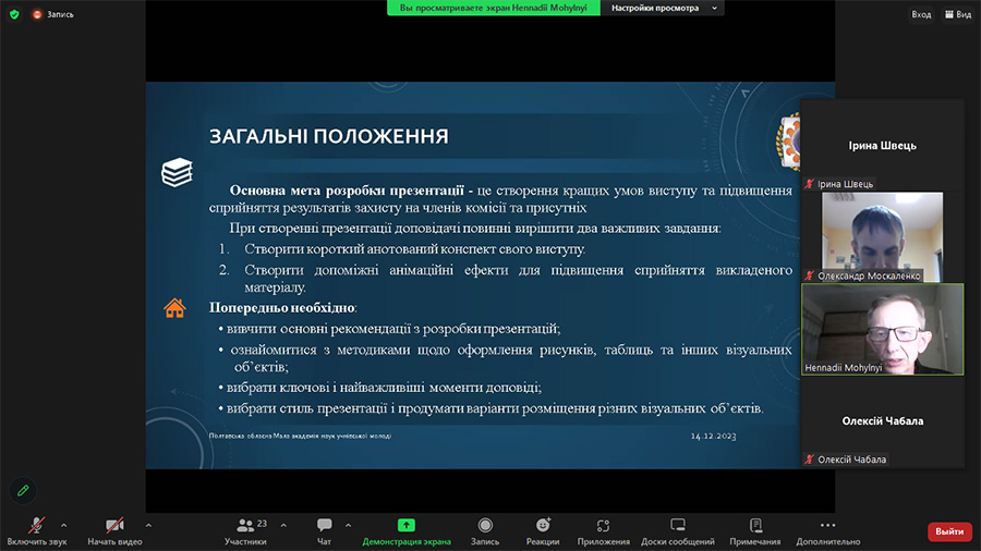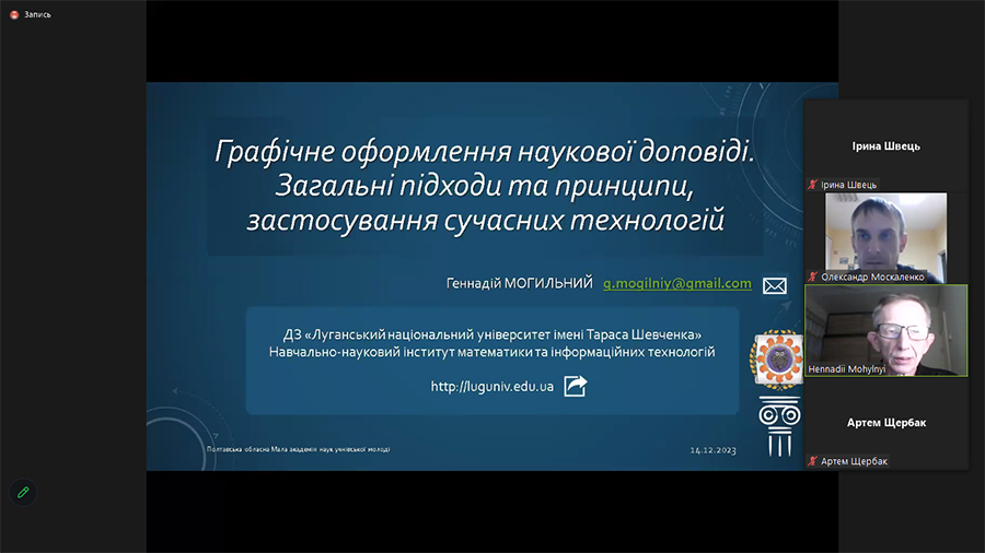 16 грудня, в межах співпраці з Полтавською обласною Малою академією наук учнівської молоді, в.о директора НН ІМІТ Геннадій Могильний, провів заняття на тему «Графічне оформлення наукової доповіді. Загальні підходи та принципи застосування сучасних технологій».