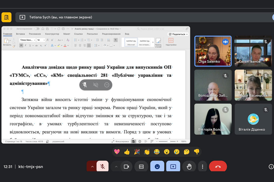 На засіданні були розглянуті важливі питання щодо допуск до підсумкової атестації здобувачів 2 курсу другого (магістерського) рівня вищої освіти спеціальності «Менеджмент», освітня програма Управління навчальними закладами; доцент Ольга ПТАХІНА ознайомила присутніх із сучасними тенденціями підготовки магістрів спеціальності «Публічне управління та адміністрування» у вітчизняній практиці; результати аналіз ринку праці регіонів України щодо випускників спеціальності «Публічне управління та адміністрування» представила доцент Ольга САЄНКО.
