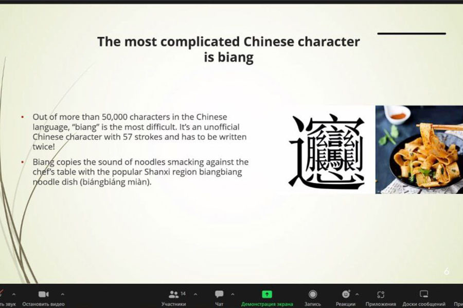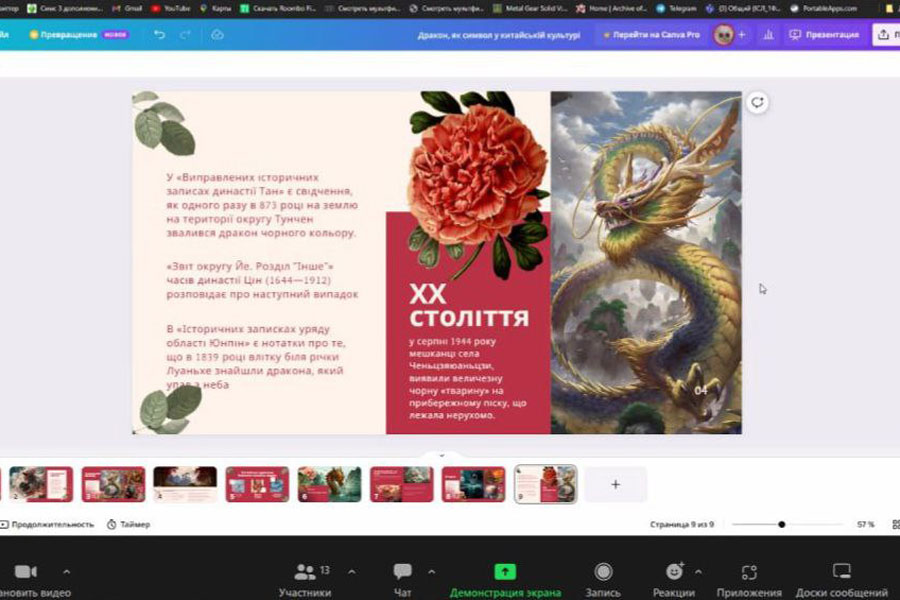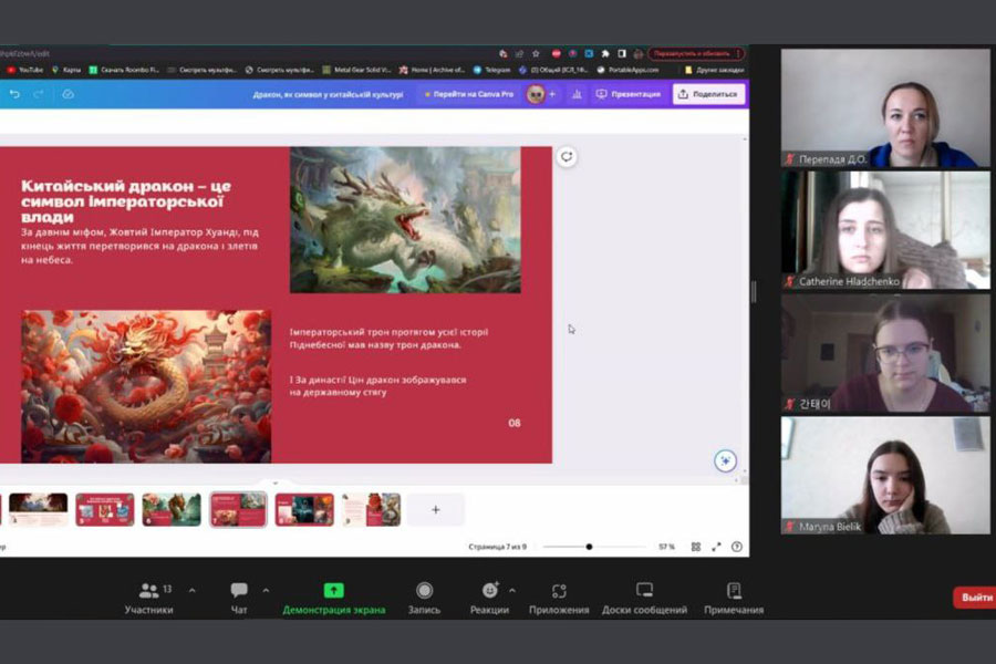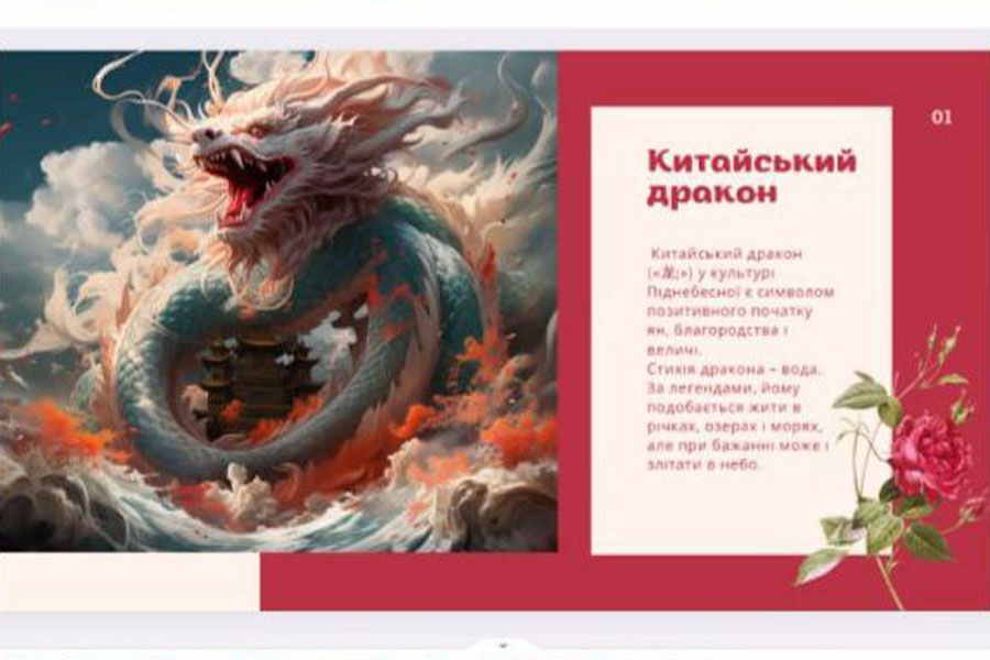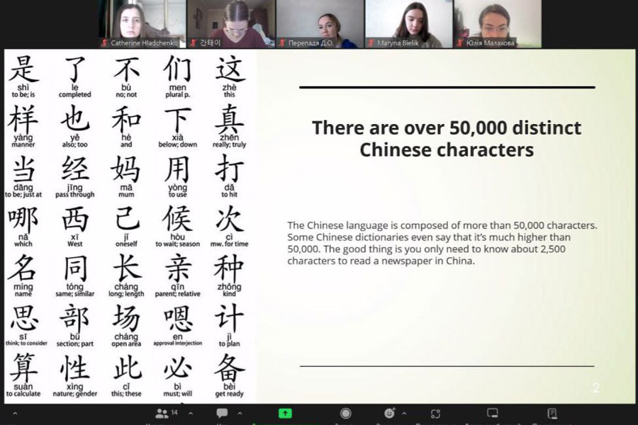 З презентацією на тему «Китайські ієрогліфи»» виступила студентка 2 курсу Дарина Дерев’янко. З доповіддю на тему «Культурні особливості китайської весільної церемонії» виступила студентка 1 курсу Софія Недогибченко. Студентка 2 курсу Поліна Сазонова присвятила свою презентацію дракону як символу у японській та китайській культурах. Доповіді викликали жваве обговорення, у якому взяли участь присутні викладачі кафедри східних мов і здобувачі освіти.