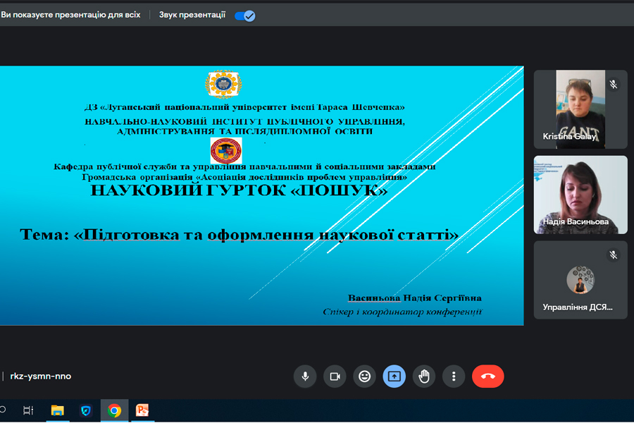 14 березня 2023 р. викладачі кафедри публічної служби та управління навчальними й соціальними закладами Навчально-наукового інституту публічного управління, адміністрування та післядипломної освіти провели онлайн засідання наукового гуртка «Пошук».