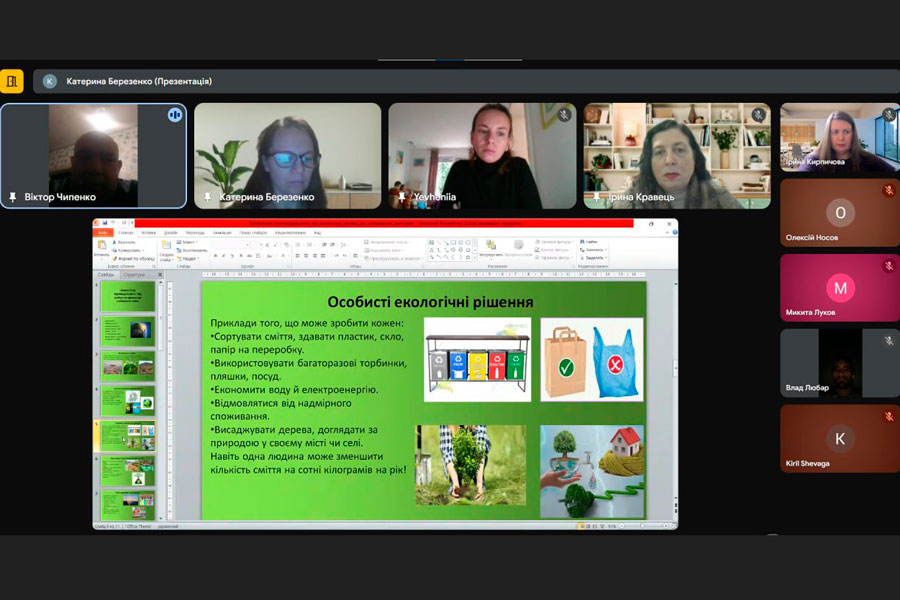 Метою заходу було формування у студентів екологічної свідомості, розуміння важливості сталого розвитку та ролі кожної людини у збереженні довкілля. Під час засідання учасники обговорили питання зміни клімату, деградації ґрунтів, охорони біорізноманіття, а також проблеми утворення та утилізації відходів. Особливу увагу приділили темі раціонального поводження з побутовими та виробничими відходами, впровадженню систем роздільного збирання, переробки та повторного використання ресурсів. Студенти представили власні доповіді та презентації, у яких детально розповіли, як кожен з нас може зробити конкретний крок у збереженні довкілля: від сортування та переробки відходів до зменшення споживання ресурсів, участі у зелених ініціативах і впровадження екологічно безпечних практик у повсякденному житті.