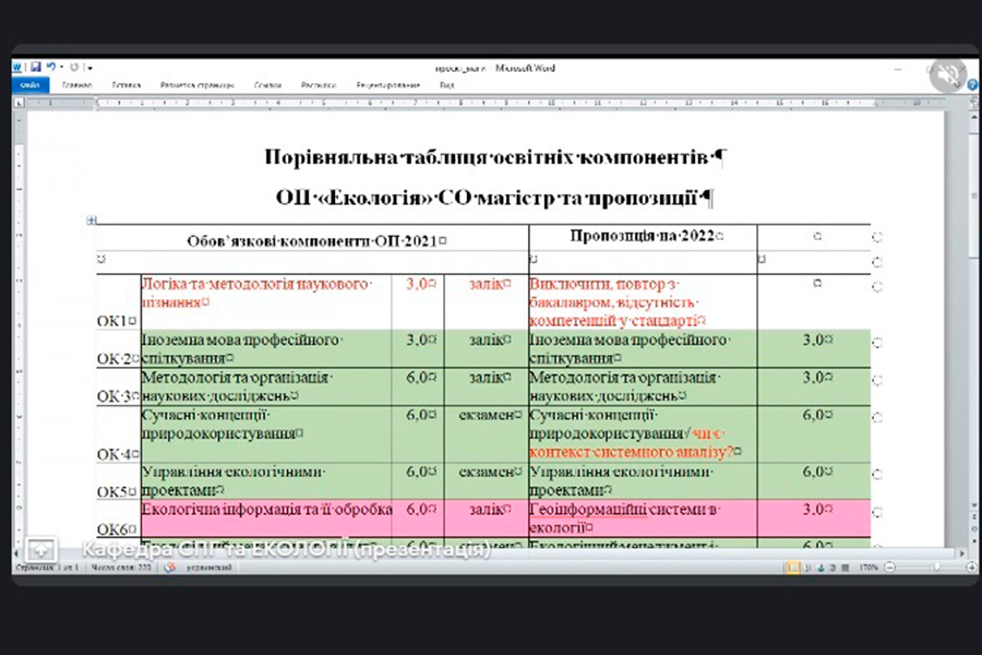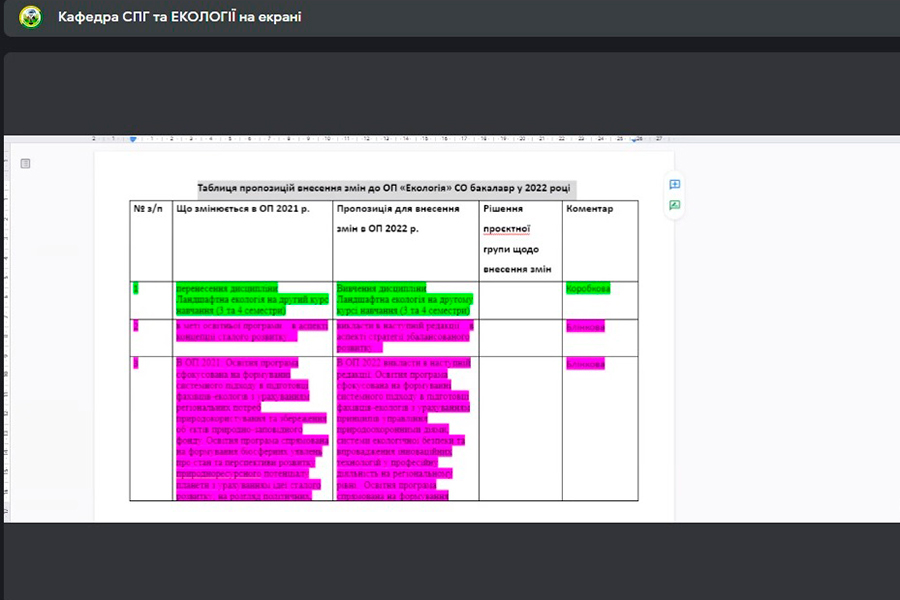 Учасники онлайн-заходу взяли участь в активному обговоренні проєктів, відповідно, усі пропозиції, які було надано, піддано розгляду та рекомендовано або відхилено до включення в проєкти освітніх програм.