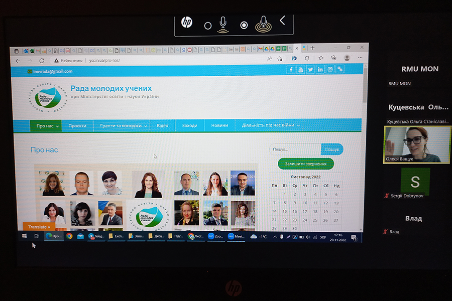29 листопада відбулася перша масштабна зустріч аспірантів 1-3 років навчання та членів Ради молодих учених із представниками Ради молодих учених при Міністерстві науки і освіти України. Її було проведено попри віялові та аварійні відключення електроенергії та мобільного зв’язку по всій території нашої країни.