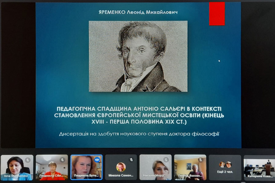 До захисту представлена дисертація Яременка Леоніда Михайловича на тему «Педагогічна спадщина Антоніо Сальєрі в контексті становлення європейської мистецької освіти (кінець XVIII – перша половина XIX ст.)», з галузі знань 01 – «Освіта/Педагогіка», за спеціальністю 011 – «Освітні, педагогічні науки».