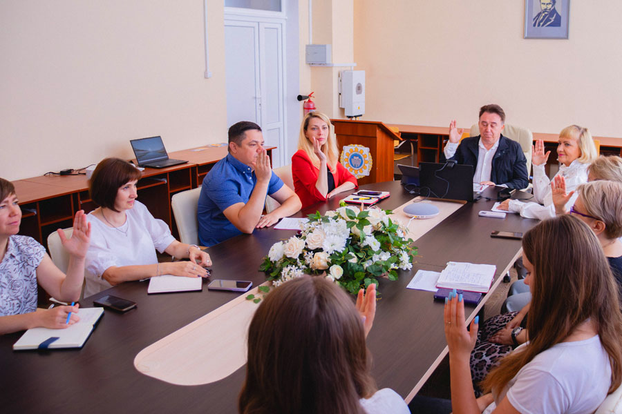 Під час розгляду першого питання голова вченої ради університету Віталій Курило ознайомив присутніх з планом роботи вченої ради на 2025 – 2026 н. р. План було затверджено відкритим голосуванням із врахуванням поданих членами вченої ради пропозицій і зауважень.