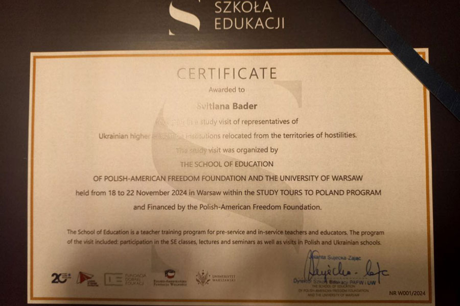 Семінар дозволив учасникам поглибити знання про сучасні освітні методики, обмінятися практичним досвідом та ознайомитися з інноваційними підходами до навчання, що впроваджуються у Польщі.