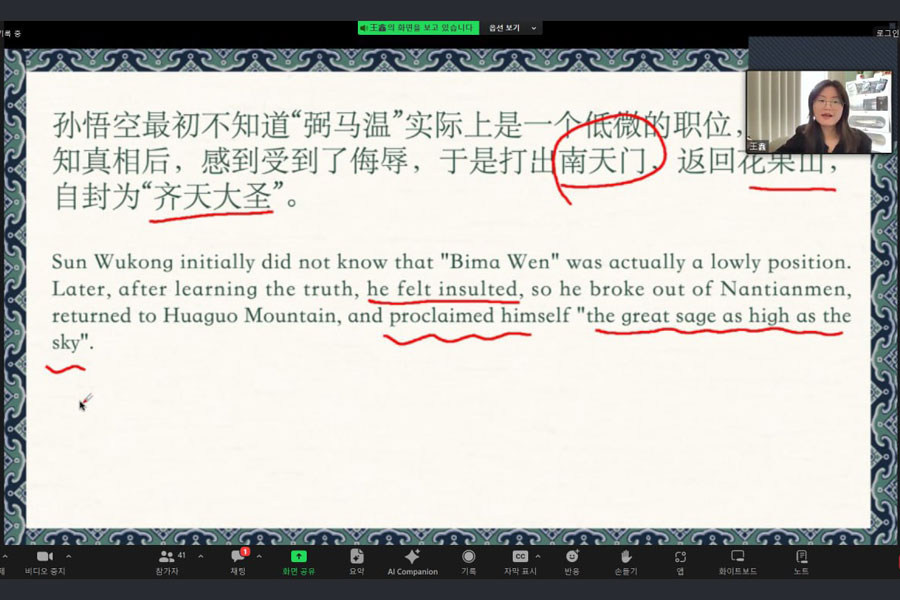 Лекція проводилася китайською мовою. Майбутні китаїсти мали нагоду не тільки почути дуже багато цікавих фактів, але й послухати і поспілкуватися з носієм китайської мови. Після завершення лекції учасники брали участь у дискусії щодо історії Короля Мавп.
