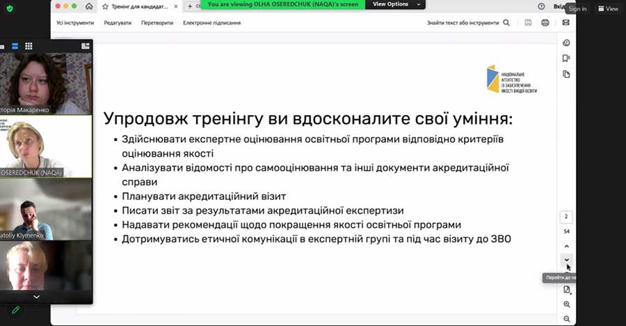 Заключним етапом став підсумковий тренінг, участь у якому відкрила можливість здобути офіційний статус експерта з акредитації освітніх програм. Завдяки цьому Вікторія отримала шанс долучитися до оцінювання якості освітнього процесу в закладах вищої освіти