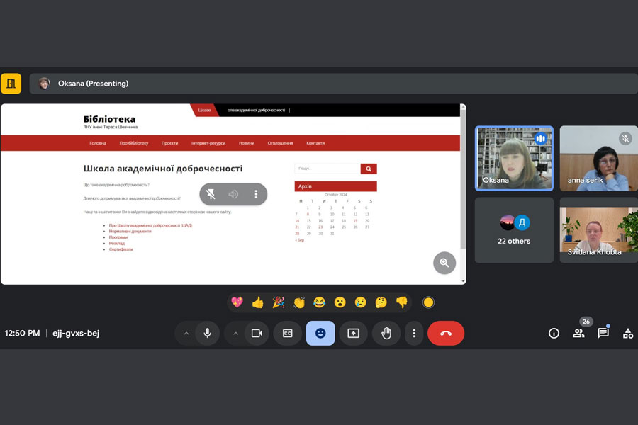 Здобувачі освіти ознайомилися з особливостями доступу до бібліотечних фондів, репозитарію, процедурою доступу до баз, змістом інформаційних матеріалів, які наразі є на сайті бібліотеки та які планується розмістити протягом найближчого місяця. Так, на сайті будуть розміщені вимоги до оформлення бібліографічних посилань у списку використаних джерел за стандартом ДСТУ. Здобувачів першого (бакалаврського») і другого (магістерського) рівнів освіти спеціальності “Соціологія” в межах вебінару " Методичні рекомендації до написання кваліфікаційних робіт " познайомили з вимогами до оформлення списку використаних джерел, але добре, що ці вимоги буде легко знайти на сайті бібліотеки.
