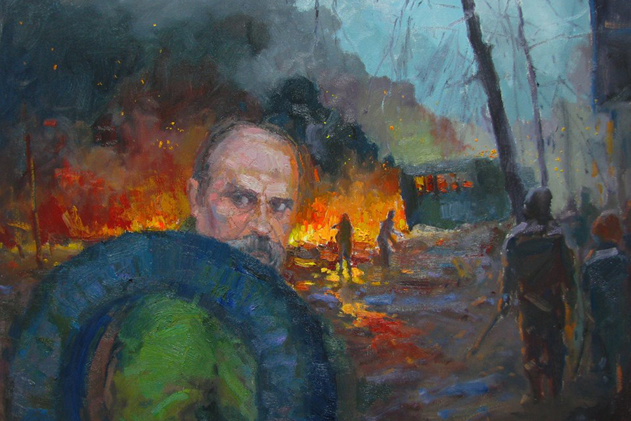 У 2015 році Юрій Шаповал малює Кобзаря у незвучних образах, створюючи серію картин під назвою «Григорович – проти», де Тарас Шевченко то робить селфи на айфон, то несе службу в АТО, то бере участь у Майдані. Остання картина з’явилася на поштовій марці Нової Зеландії.