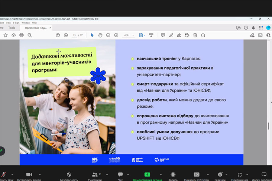 7 травня 2024 року в Луганському національному університеті імені Тараса Шевченка відбулася Zoom конференція з представниками ГО «Навчай для України».