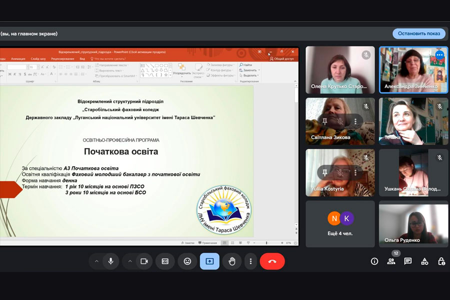 З метою якісного формування структури та обговорення проєкту ОПП 19 березня у ВСП «Старобільський фаховий коледж ДЗ «ЛНУ імені Тараса Шевченка» відбулася зустріч робочої групи освітньо-професійної програми «А3 Початкова освіта. Мова та література (англійська)» зі стейкхолдерами. Тема зустрічі: «Підготовка фахових молодших бакалаврів за освітньо-професійною програмою «А3 Початкова освіта. Мова та література (англійська)». Загальні та спеціальні освітні компетентності і результати навчання».