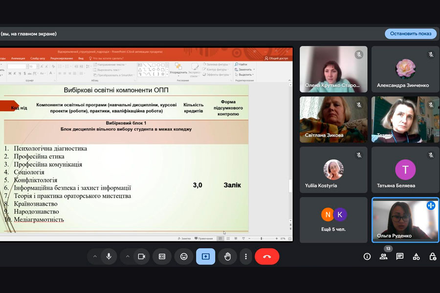 Зі вступним словом до учасників звернулась директорка коледжу Олена КРУТЬКО, зазначивши, що такі зустрічі є важливими для удосконалення освітньо-професійних програм. Вона також закликала стейкхолдерів до активної співпраці для забезпечення якісної підготовки фахівців, які відповідатимуть вимогам сучасного ринку праці.